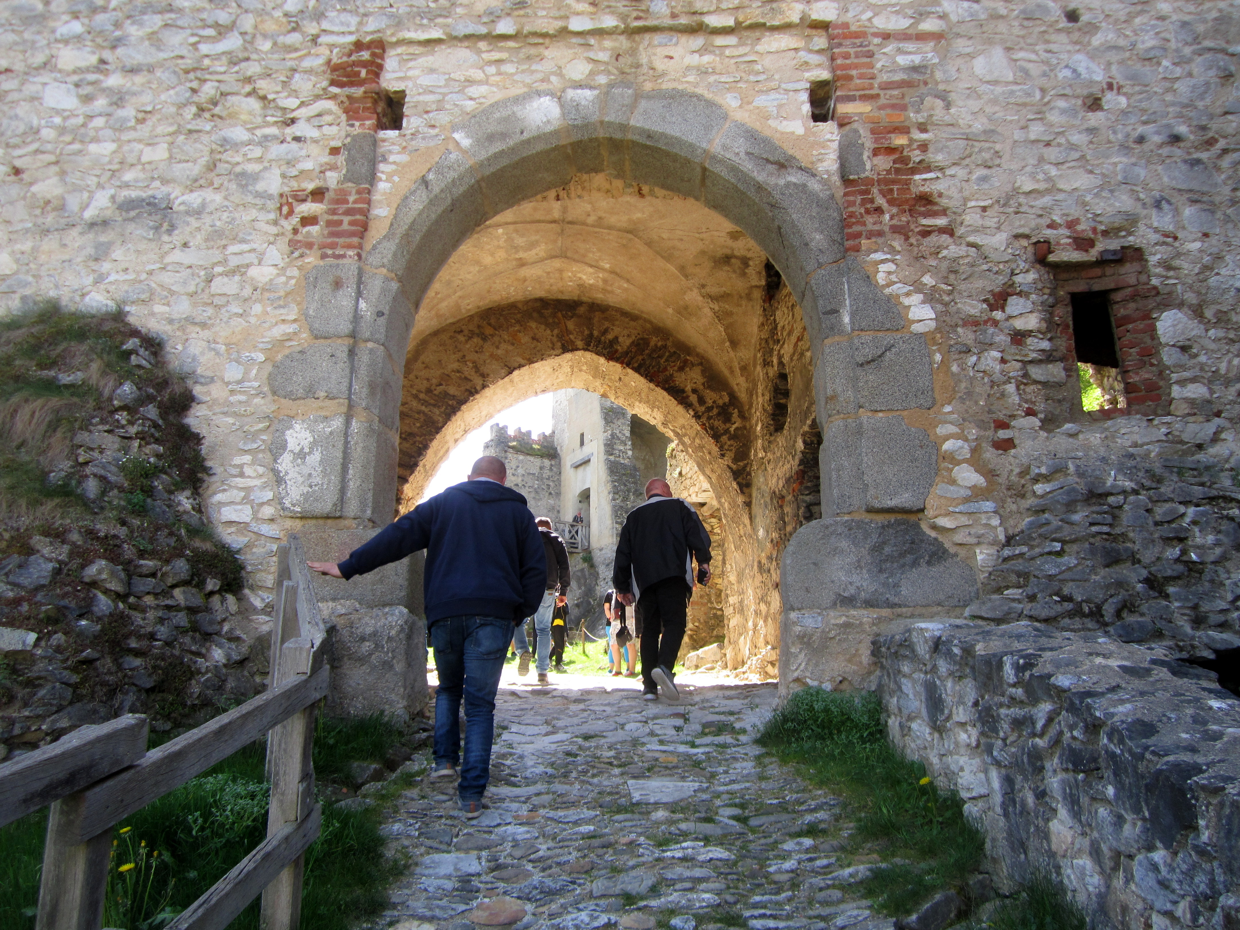 čtvrtek 2.5. Na dnešek je naplánován výlet na hrad Rabí. Ráno posnídáme dobrou polévku, smícháme vývar z kolen s česnečkou a vyjíždíme Oktávkou k hradu. Jenda s Liiborem jedou na kole. Na náměstí se ještě potkáváme, ale my jdeme na prohlídku a kolilsti se pomalu vrací k Sušici. Hrad byl postaven někdy kolem roku 1350 jako strážní tvrz, postupně se rozšiřoval a za tu dobu se z něj stal velký hradní komplex. Z věže je nádherný výhled do okolí, dole se kllikatí řeka Otava a na obzoru se zdvíhají šumavské kopce. Na nádvoří je k vidění 60 metrů hluboká studna, která je dodnes funkční a bere se z ní užitková voda (protože nikdo dlouho neudělal rozbor). Po prohlídce si na rynku dáváme zmrzlinu a sjíždíme dolu z kopce k lomu se trochu osvěžit. Potom jedeme do Kašperských Hor, tady projdeme náměstí, podíváme se na policejní služebnu policie Modrava. Chceme se zajít na oběd, ale bohužel nepodařilo se najít vhodnou hospodu tak sedáme do auta a odjíždíme do tábořiště a dáváme vařit kolena na večeři. Byly výberné a máme na ráno polévku. Po večeři ještě sedíme u ohně než se nám zavřou oči. |