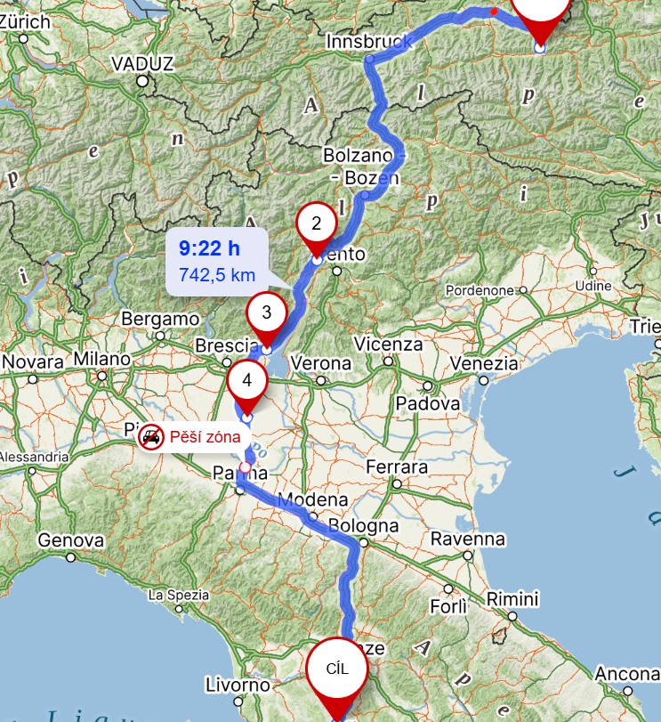 Odjíždíme, je středa 11.6.25 okolo 17 hodiny na tachometru je 176 611 km. Máme trochu zpoždění a setkáváme se na benzince ve Studené. Járovi praskla pojistka tak se vrací ji opravit, tak že se nakonec setkáváme ve Včelné u restaurace. Následně pokračujeme v cestě do Rakouska. V Dolním Dvořišti ještě doplňujeme nádrže a den zakončujeme na parkovišti u Lince na tachometru je 176 839 ujeto 227 km průměrná spotřeba je 4,6 l/100 km. Ráno okolo 7 hodiny po snídani pokračujeme v cestě směr Brener podíváme se na kopečky Alp a sjíždíme směrem k jezeru Molveno Jezero Molveno (Lago di Molveno) se nachází v severní Itálii v regionu Trentino-Alto Adige, na úpatí pohoří Brenta v Dolomitech. Je to jedno z nejmalebnějších a nejčistších alpských jezer. Tady je několik zajímavostí a faktů, které dělají jezero Molveno výjimečným: - Molveno je největší přírodní jezero v oblast, které neleží přímo v údolí řeky Adiže. Má rozlohu asi 3,3 km čtvereční a hloubku 123 metrů - Pravidelně získává ocenění za ochranu přírody, čistotu vody a ochrany životního prostředí. - Okolí jezera je součástí přírodního parku v Tridentsku, kde žijí například i medvědi hnědí. - Při snížení hladiny jezera v roce 1952 se ukázaly pozůstatky původního lesa a doknce i sídliště z doby bronzové. To svědčí o velmi dlouhé historii osídlení v této oblasti. Taky jsme se trochu vykoupali, ale voda byla dost studená tak to bylo asi na 3 tempa a ven. Ještě si dáme svačinku a pokračujeme v jízdě na jih. Nocujeme na dálnici 33 E a od rána jsme ujeli 817 km |